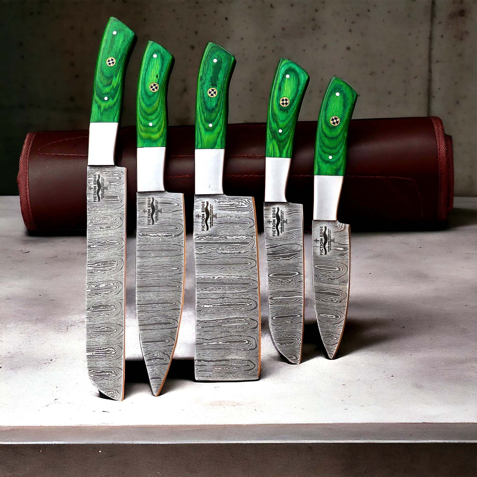 Damascus Chef Knife Set | Green Handle Collection | Fiction Edge